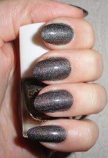 This is the colour without lighting, it reminds me a bit of an LE polish by Essence, which was also a holographic darker grey.